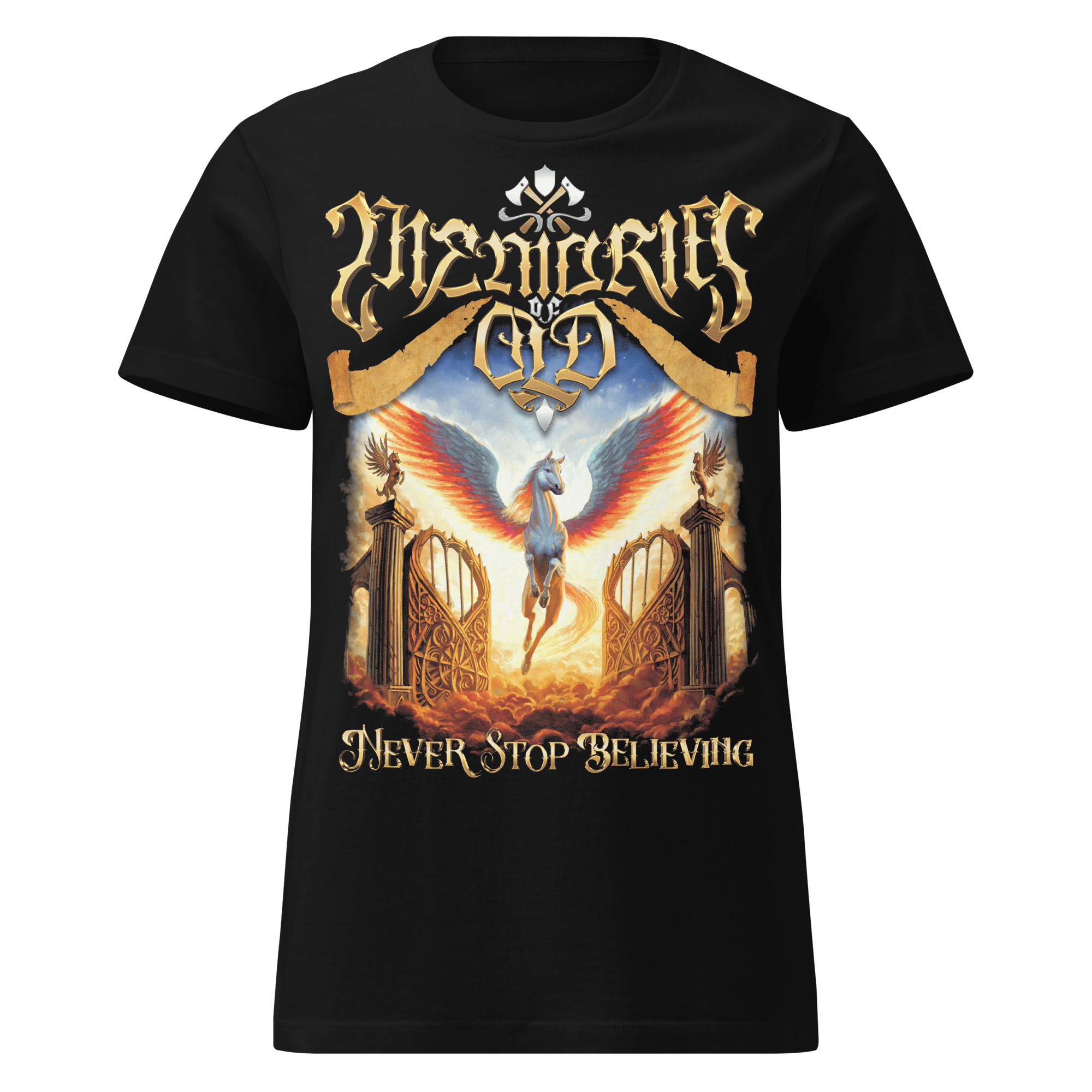 Rock out with style and let your dreams take flight with this epic Never Stop Believing artwork women's fit t-shirt, featuring the cover art from our latest album!